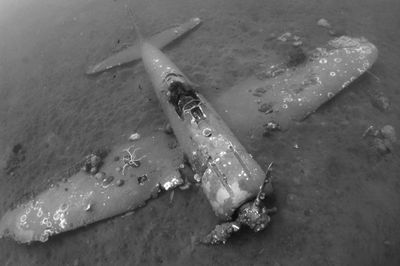 wreck of a Zero fighter. The wreck of The Zero rests on a sandy bottom in 14 meters (45ft) of water in the shelter of Wangore Bay, north of Walindi. This World War II Japanese fighter is well presented and almost completely intact, and has been brought to life again by the shrimp, nudibranchs and pipefish that have made this wreck their home – there’s even an anemone populated with pink anemone fish sitting just behind the cockpit.