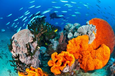 Kimbe Bay pulses with life: its coral reefs hold more than half of all species on Earth, a rainbow jungle that more than 900 reef fish species call home. Kimbe Bay is located in the Bismarck Sea, a key area in the global center of marine biodiversity. The Coral Triangle and Kimbe Bay lie almost centrally within this. Its marine life is remarkable: Kimbe Bay possesses 4 critically endangered, 11 endangered and 173 vulnerable species. These include the Largetooth Sawfish (Pristis pristis), Pondicherry Shark (Carcharhinus hemiodon), Olive Ridley (Lepidochelys olivacea) and Leatherback Turtles (Dermochelys coriacea), Scalloped Hammerhead (Sphyrna lewini) and Sei Whale (Balaenoptera borealis).